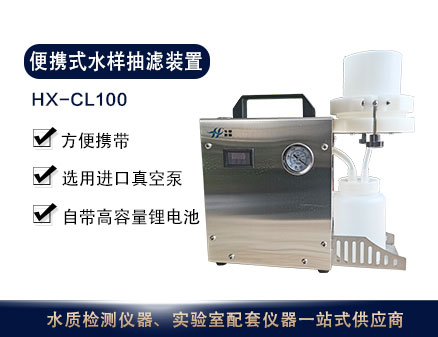 HX-CL100便攜式水樣抽濾器是水質(zhì)采樣后對被采集水樣的現(xiàn)場過濾的儀器設(shè)備,廣泛應(yīng)用于環(huán)境監(jiān)測系統(tǒng),石油化工、水文水利、自來水公司、污水處理廠、火力發(fā)電廠、鋼鐵企業(yè)、高校科研教學(xué)、農(nóng)業(yè)環(huán)境監(jiān)測、鐵路環(huán)境監(jiān)測、汽車制造、海洋環(huán)境監(jiān)測、交通環(huán)境監(jiān)測、環(huán)境科研等部門。