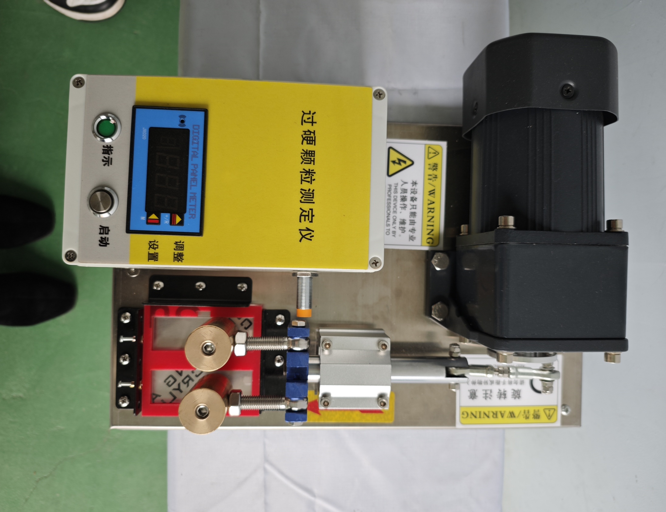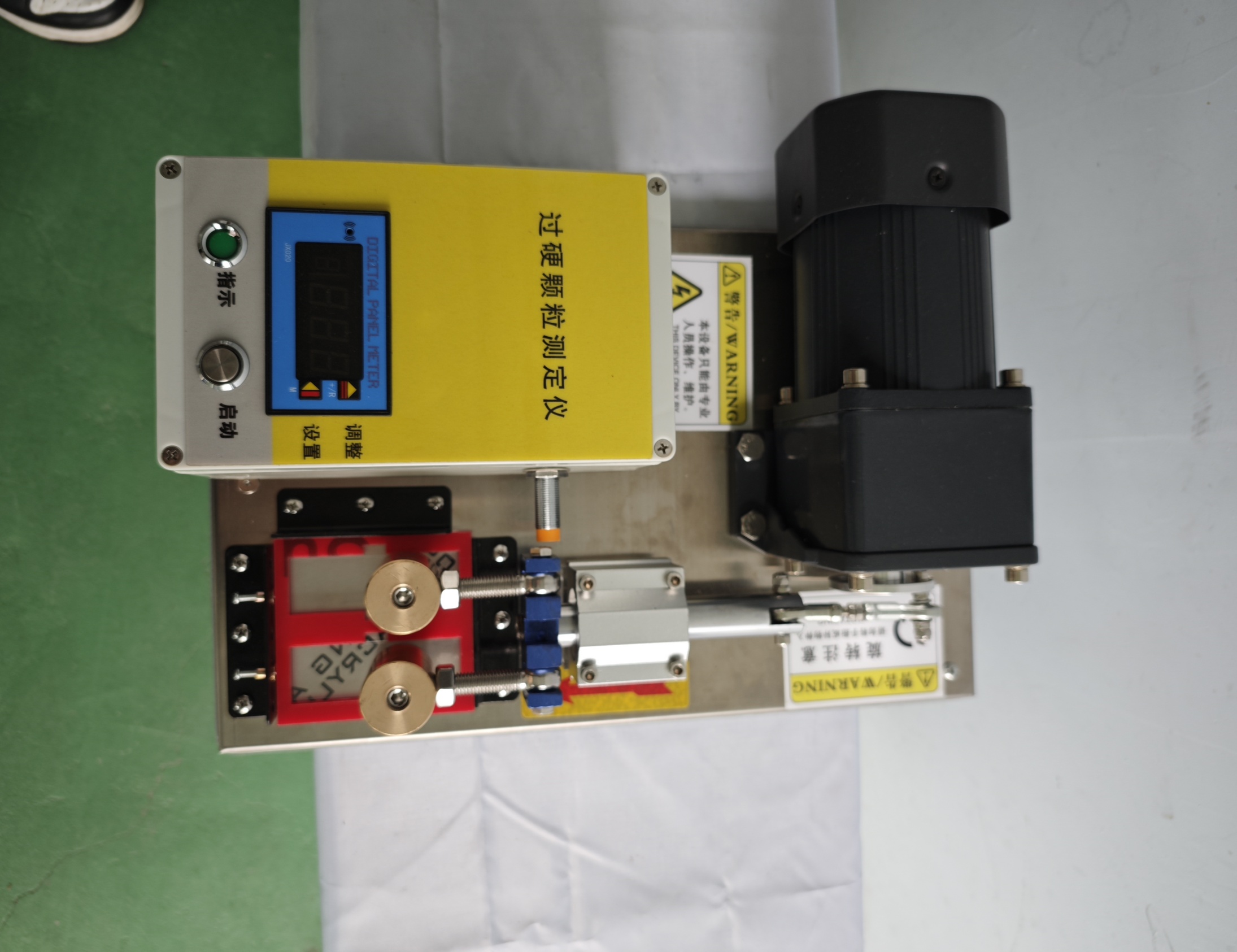 4.1 過硬顆粒測定儀(碾磨裝置不轉時,其表面應平整光滑,表面直徑 25 mm,質量 300 g±20 g。往復距離 40 mm±10 mm、往復的頻率 40 次 /min±2 次 /min,碾磨時的壓力與加載時的氣壓匹配)。4.2 載膜片(75 mm×25 mm×1 mm,維氏硬度 5.4 GPa±0.5 GPa)。4.3 分析天平:感量為 0.01 g。4.4 直尺:分度值為 1 mm。