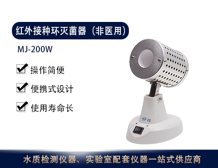 MJ-200W紅外接種環滅菌器是我們新研發的滅菌器,除常規接種環、接種針、鑷子、剪刀消毒外,還可以對實驗室常用的三角瓶口、試管瓶口等消毒。